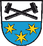 Wappen. Im silbernen Feld sind zwei gekreuzte Hämmer dargestellt. Im